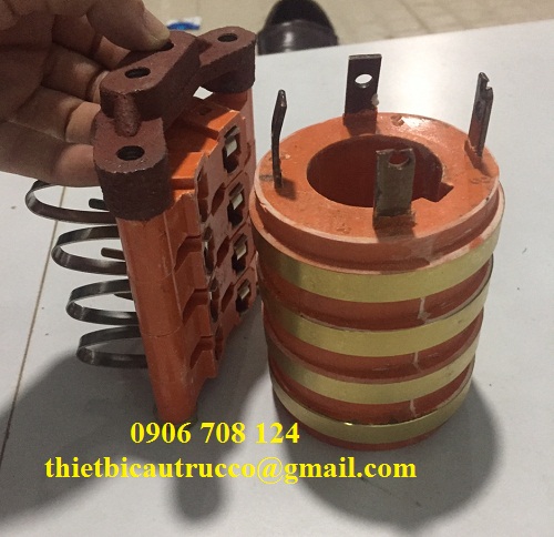 Cổ góp điện 4 vành đường kích 40 x 80 x 95 mm sử dụng bộ giá đỡ chổi than 8 x 12 x 32 mm có khả năng tiếp xúc và dẫn điện tốt, lắp đặt và thay thế thuận tiện.